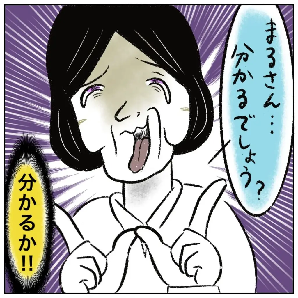 「一流の教師はね、教え子の顔は何年経っても覚えているものよ?」と一流の教師ぶる性根先生に寒気がするまるさんは、「てかこいつ、何しにここへ?」と頭をひねります。性根先生の2人の子どもは、まるさんより年上で、すでに成人しているはず・・。そう思っていると、「この間テレビに出てたわよね?」と突然の質問。さらに、「新聞も見たわよー!」と言い出す性根先生。「地元のテレビでチラッと紹介されただけ、新聞って・・高校の時に賞とってメッチャ小さく載ったやつのこと?」まるさんが頭の中で考えていると、「ねぇ、まるさん」とニヤけた表情の性根先生を見て嫌な予感が!