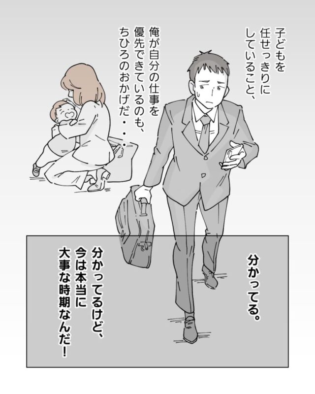 翔くんをちひろさんに任せっきりにしていること、自分の仕事を優先できているのもちひろさんのおかげだと感じていた良平さんは、「わかってる。わかってるけど、今は本当に大事な時期なんだ!」と思いを噛みしめていたのでした。