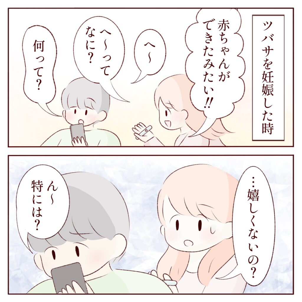 「赤ちゃんができたみたい!」「へ~」完全に他人事の夫