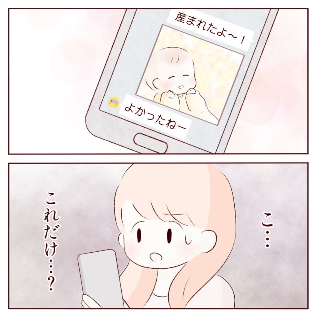 「産まれたよ~」夫に出産の報告メールを送ると、「よかったねー」とだけ書かれたメールが。思わず、「こ・・これだけ・・?」と言葉を失ってしまいました。