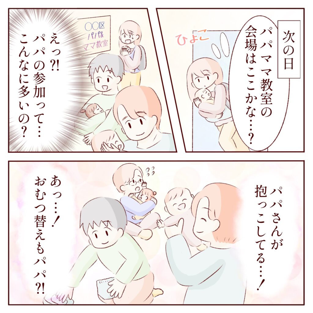 子どもに全く興味のない夫カズキと生活していた私は、よそのパパさん達がどんな様子なのかわからないまま過ごしていたのですが、パパママ教室へひとりで参加した時に衝撃を受けました。