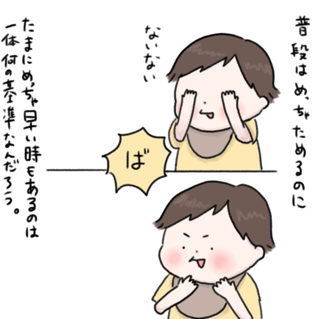 普段はすごく溜めるのに何故かたまにものすごく早くば!をされてなるほど不意打ちをしたいのかと感心しました。