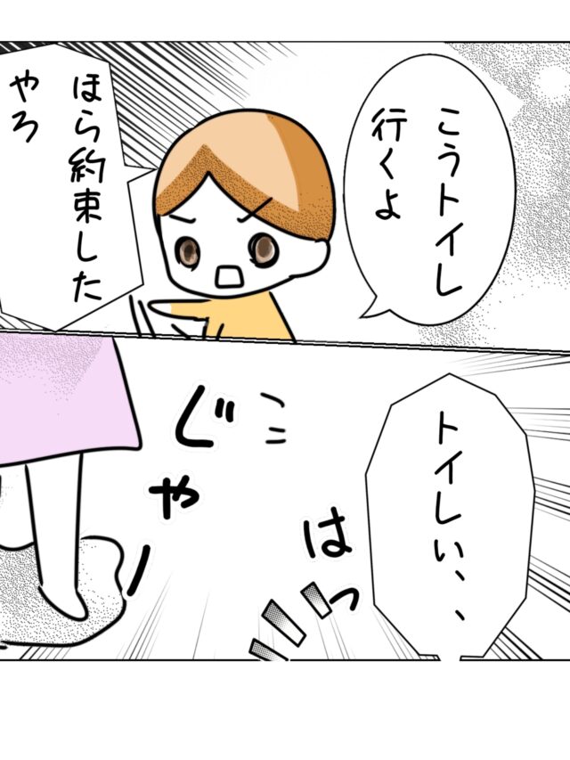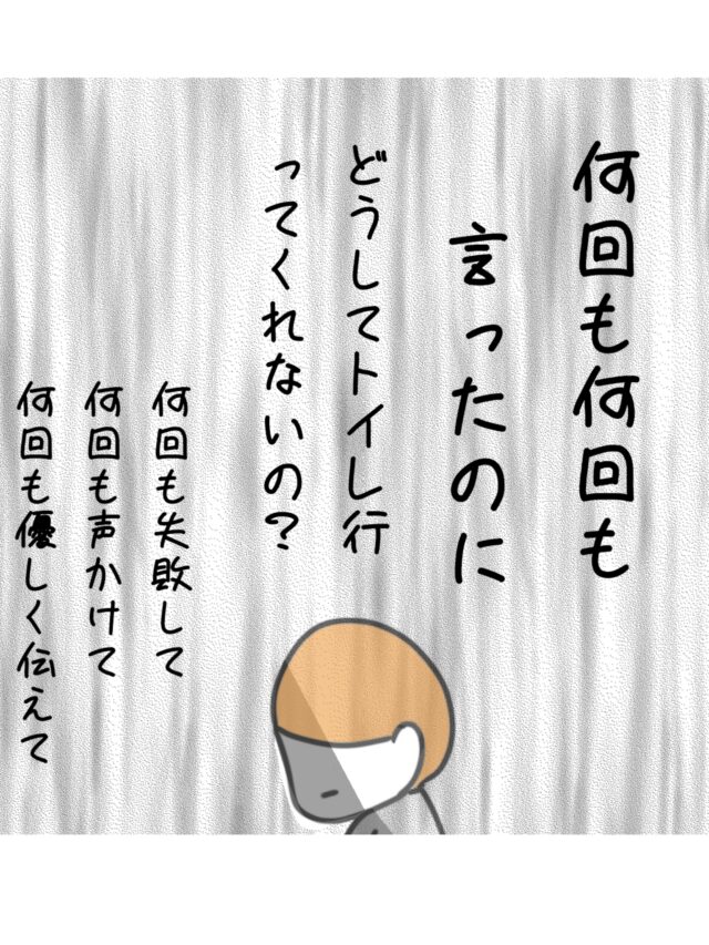 のんママさんは育児がしんどいと思うときもありましたが、そのストレスに気付いていませんでした。長女こうちゃんの幼稚園入園を控えオムツが外れていないことに焦っていたのんママさん。それぞれのペースがあると思い優しく声かけをしたり楽しく誘ったりしてもこうちゃんはトイレに行きません。悩んだのんママさんは、あるとき「次はトイレでやろうね。お約束」とこうちゃんと約束をしました。