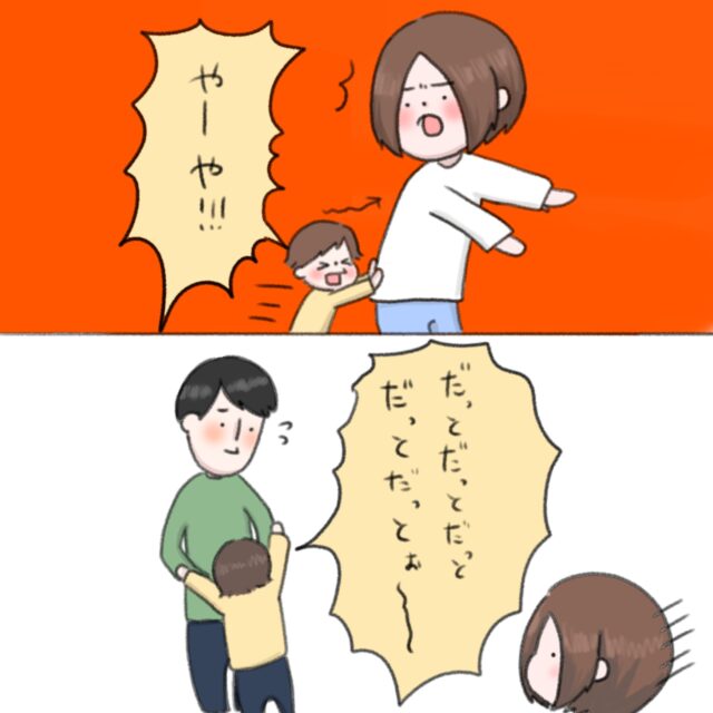 2歳の男の子みぃくんのお母ちゃんであるねむりひつじさんから、イヤイヤ期に入り始めたみぃくんのお話です。ある日、パパに抱っこをせがんでいたみぃくんに「お母さんが抱っこするよ」と言うと・・・。