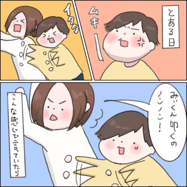2歳の男の子みぃくんのお母ちゃんであるねむりひつじさんから、イヤイヤの対処法のお話です。SNSで見た情報を元に、みぃくんのイヤイヤにある方法で対処したねむりひつじさん。どんな結果になったのでしょうか?