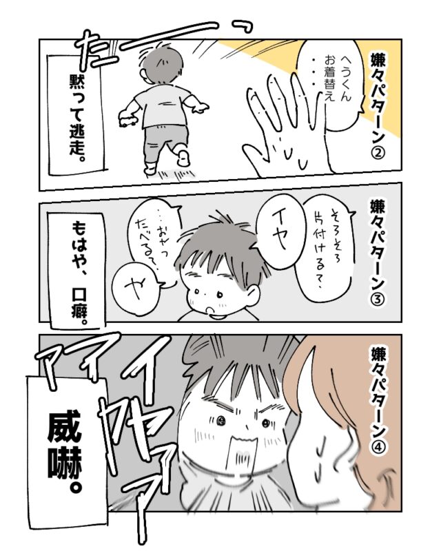 イヤイヤ期に入った1歳10ヶ月のへうくん。どんどん増えていくイヤイヤですが、パターンがいくつかあるようで・・・。