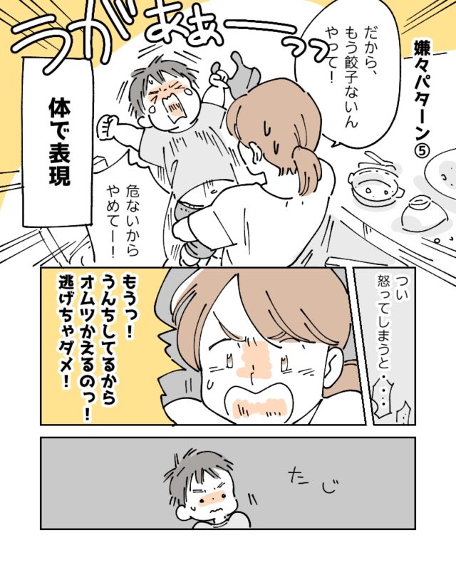色んな方法で「イヤ」を表現してくれるへうくん・・・。成長は嬉しいけど、母の言うことも聞いてほしいです・・・(涙)