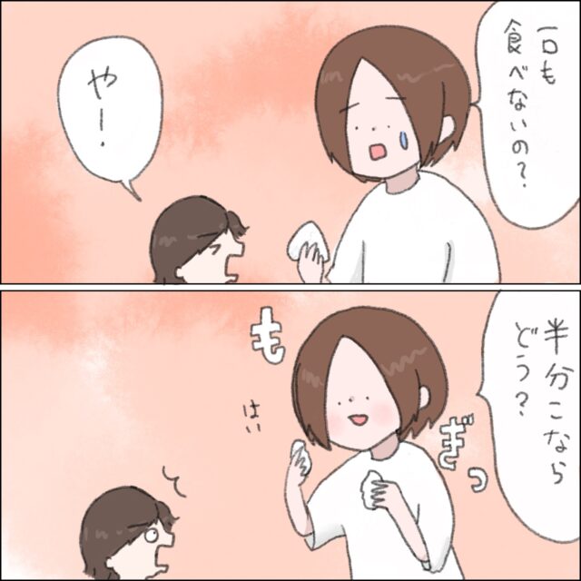 少しでも・・・と半分こして、これならどう?と聞いてみたのですが