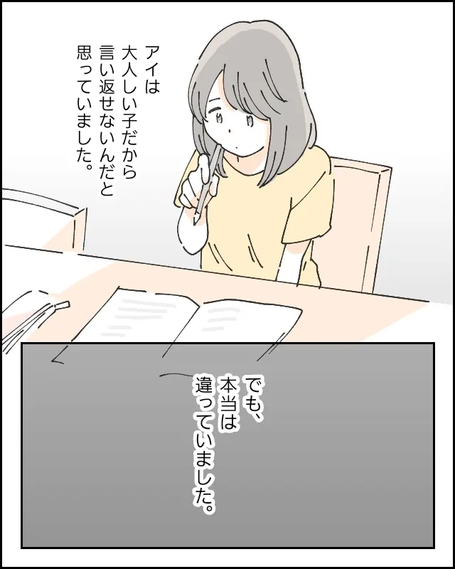 アイは大人しい子だから言い返せないんだと思っていたのです。でも、本当は違っていました。