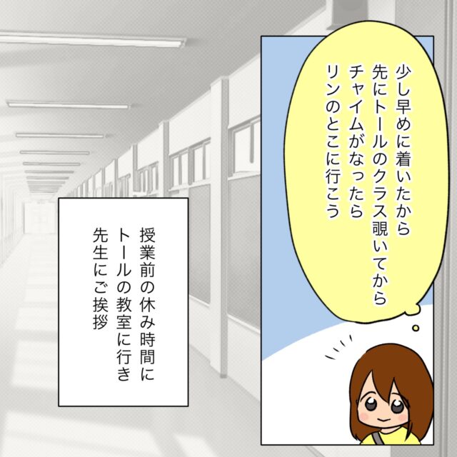 授業前の休み時間に学校に着いたので、先にトールくんのクラスを覗いてから、チャイムが鳴ったらリンちゃんの教室へ向かうことにしました。