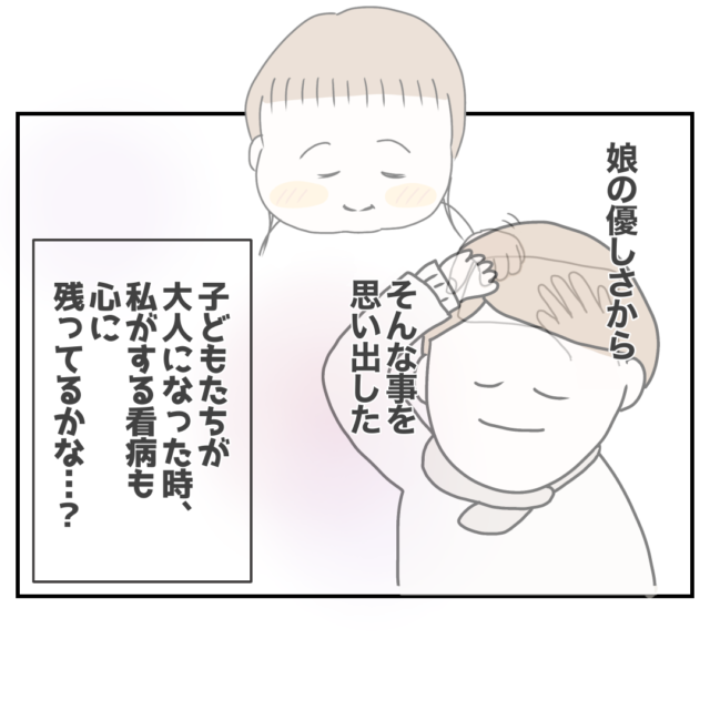 しんどい時は優しく「だいじょうぶ」と頭をなでてくれる娘ちゃんには、きっとぬーこさんが頭をなでてくれた温かい思い出があるのですねー。
