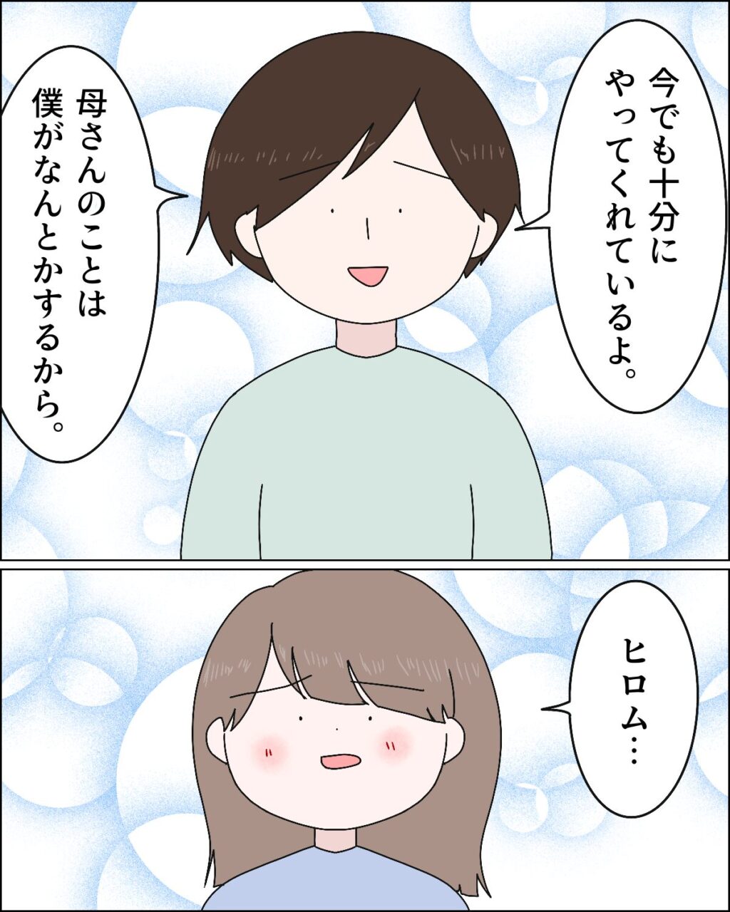「今でも十分にやってくれているよ。母さんのことは僕がなんとかするから。」と、優しい笑顔で言ってくれたヒロム。惚れ直してしまいました。