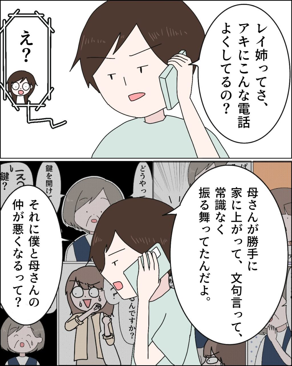 そこで、「レイ姉ってさ、アキにこんな電話よくしてるの?」ヒロムにそう言われ、「え?」と動揺するレイさん。「母さんが勝手に家に上がって、文句言って、常識なく振る舞ってたんだよ。それに、僕と母さんの仲が悪くなるって?」