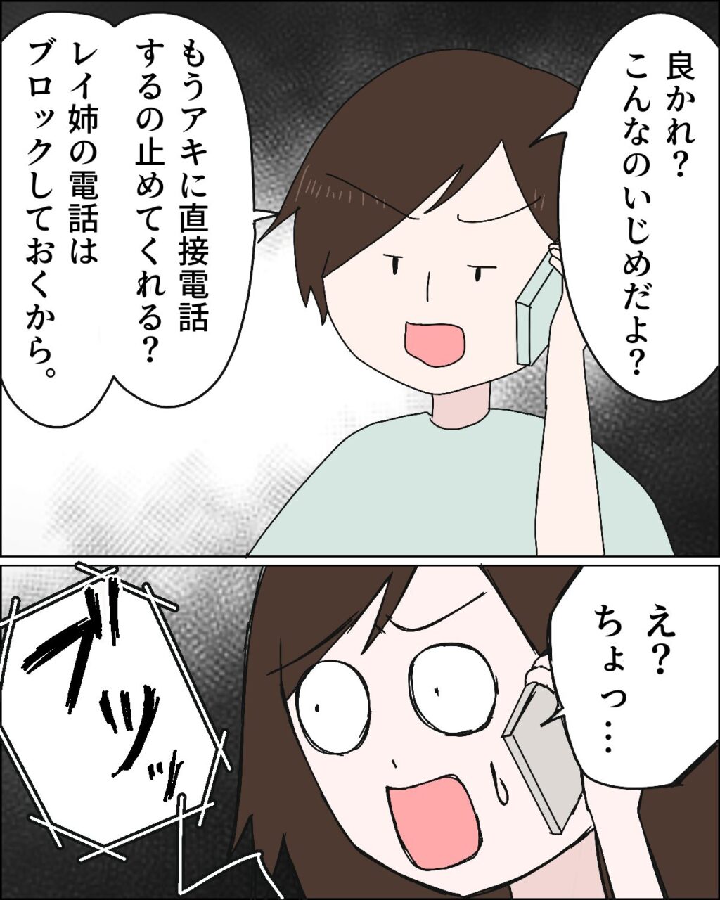 「良かれ?こんなのいじめだよ?もうアキに直接電話するのやめてくれる?レイ姉の電話はブロックしておくから」ヒロムはそう言うと、「え?ちょっ・・」レイ姉の言葉を遮ってブツッと電話を切ってしまいました。