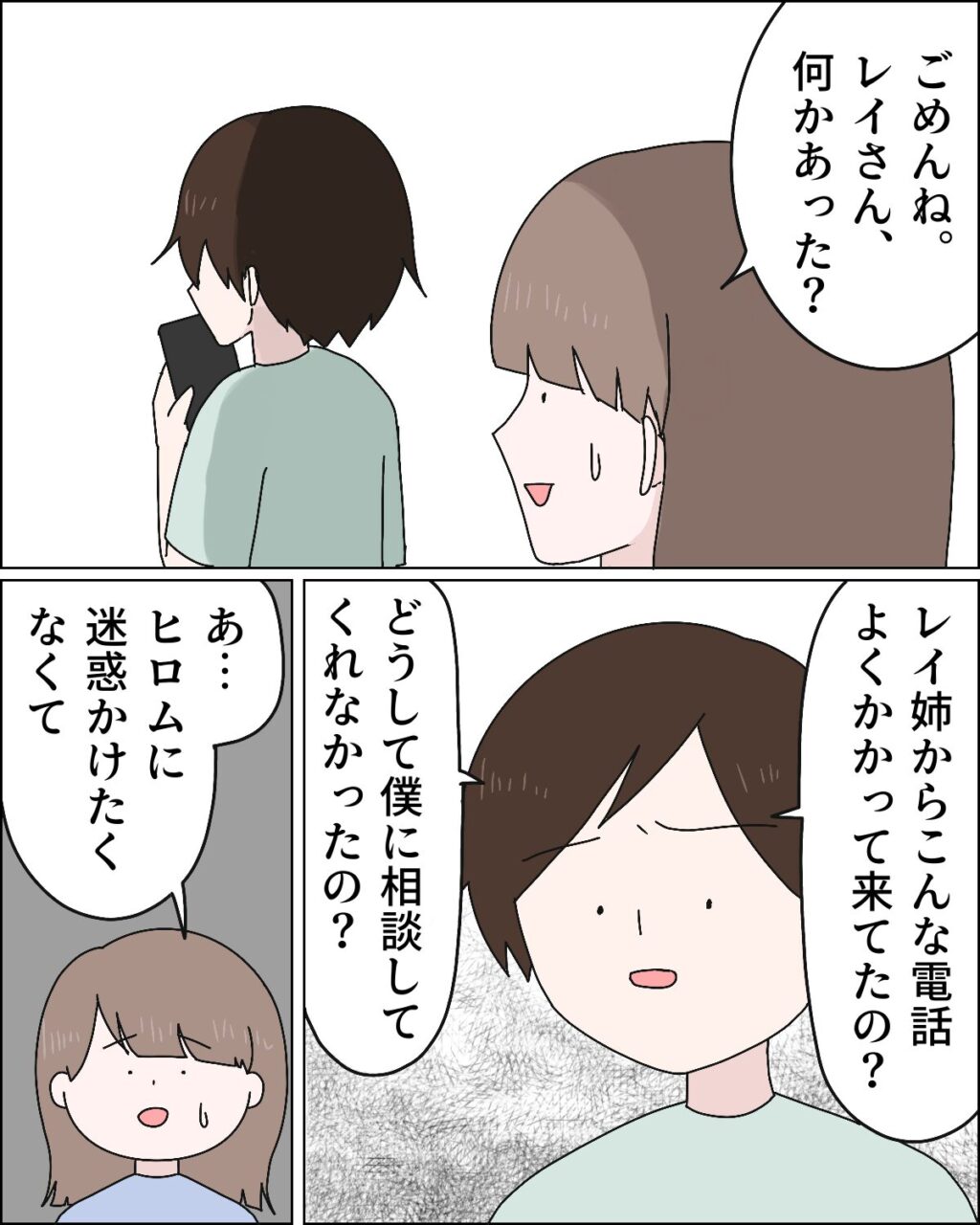 そこへ、「ごめんね。レイさん、何かあった?」と声をかけると、「レイ姉からこんな電話よくかかって来てたの?どうして僕に相談してくれなかったの?ヒロムにそう言われ、「あ・・ヒロムに迷惑かけたくなくて」と答えると、
