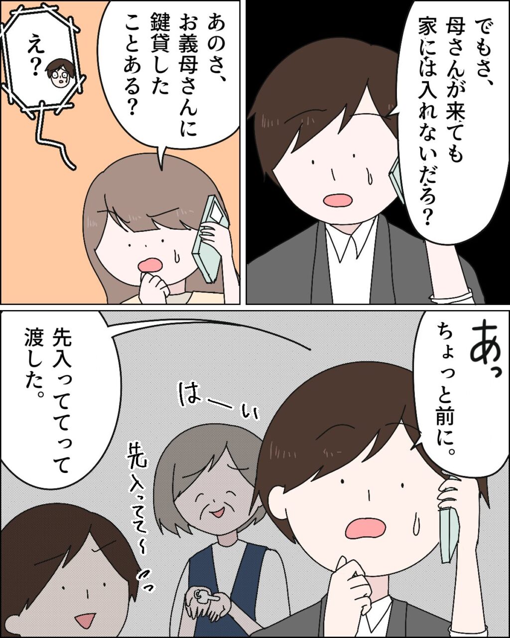 ヒロムが「でもさ、母さんが来ても家には入れないだろ?」と言うので、最近義母に鍵を貸したことがあったか確認すると、ヒロムは「あっ、ちょっと前に。」と思い当たることがあるようです。