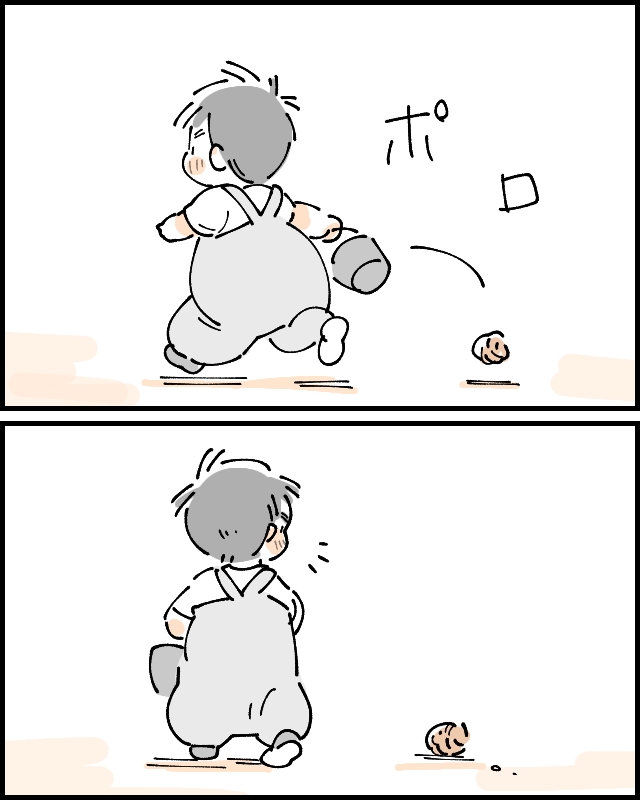 落としていることに全く気づいていないへうくん、可愛いです~!!こういうとき、教えたり手伝ったりせずただただ見てしまいますね(笑)可愛すぎる姿、ずっと見ていたいですもんね!