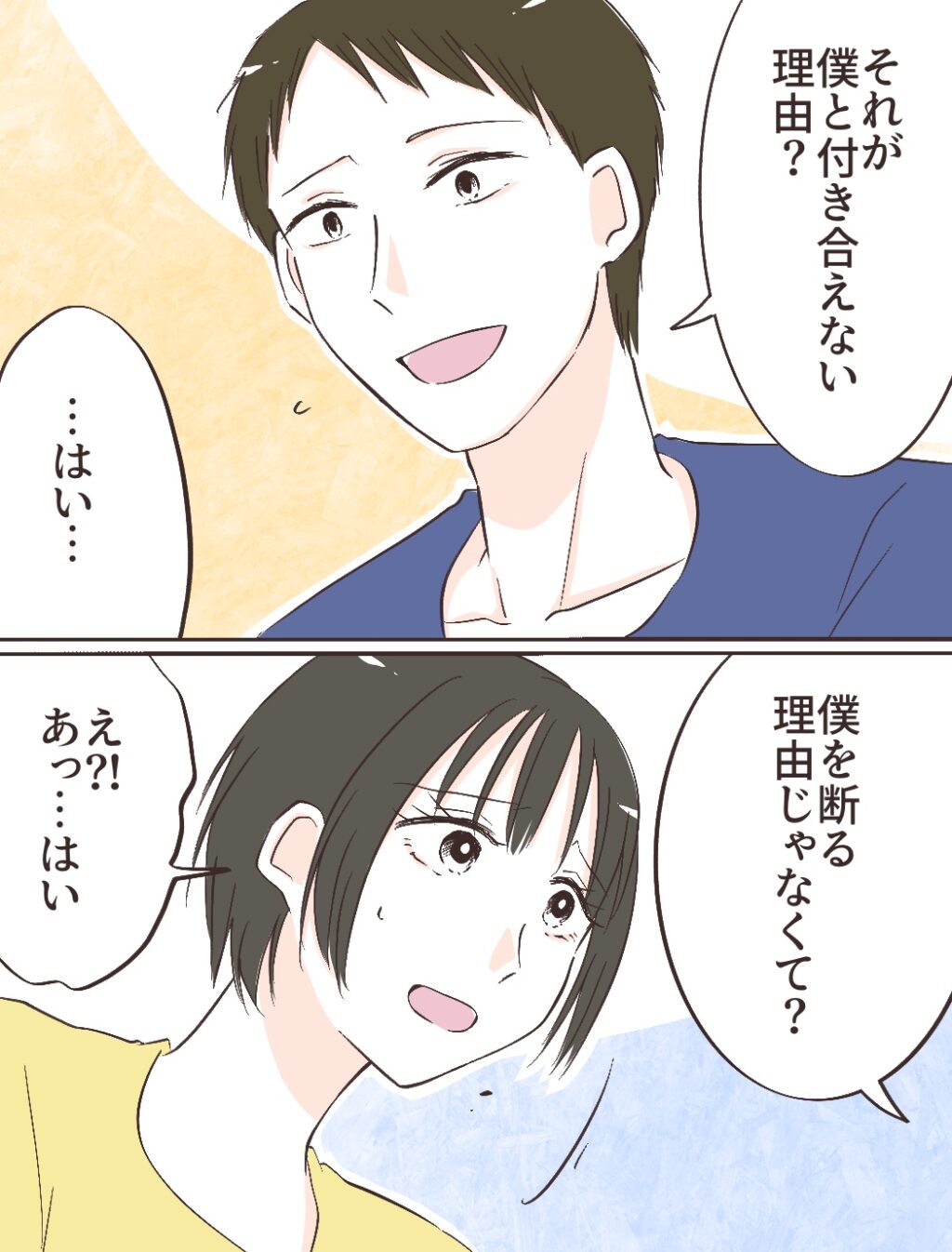 そして、「それが僕と付き合えない理由?」とたずねられ、「・・はい・・」と答えると、「僕を断る理由じゃなくて?」ともう一度、「え!?あっ・・はい」と素直に答えると、