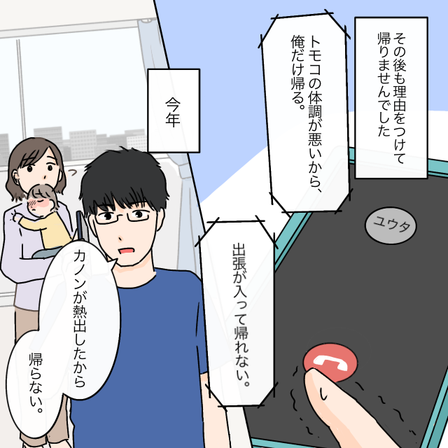 「トモコの体調が悪いから、俺だけ帰る」「出張が入って帰れない」と言って貰っていたのですが、ある日、「カノンが熱出したから帰らない」そう電話をしたとき、カノンは本当に熱を出していました。