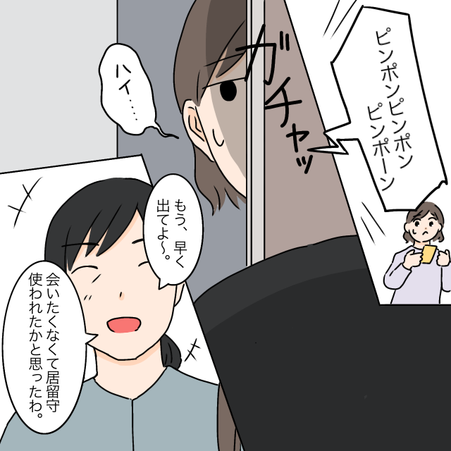 その後、ピンポンピンポンピンポーンと鳴り続け、諦めた私は「ハイ・・」とドアを開けました。「もう、早く出てよ~。会いたくなくて居留守使われたかと思ったわ」と言って笑う義母。