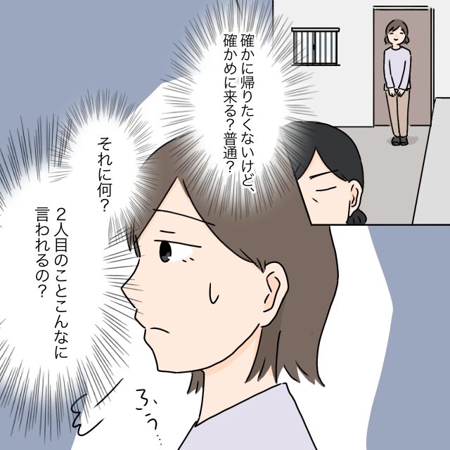 義母が帰った後、確かに夫の実家には行きたくないけど、確かめに来る?普通?それに何?2人目のこと、こんなに言われるの?とうんざりして思わずため息が。