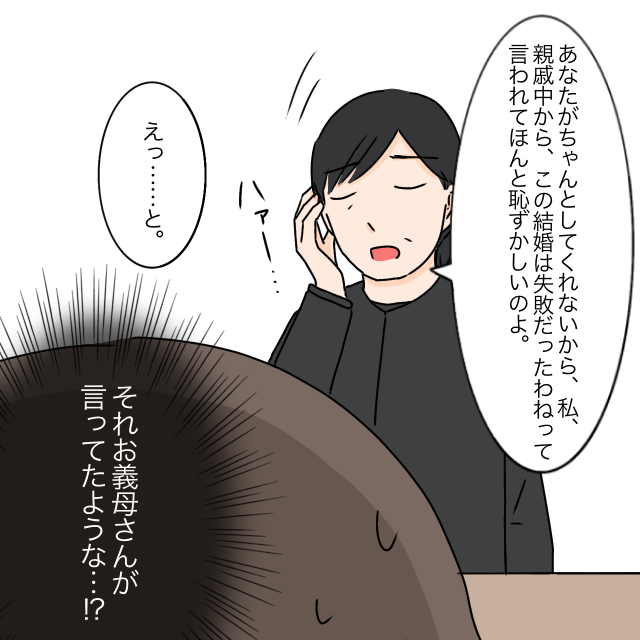 義実家の法事に行くことになった私にお茶の準備をさせた義母。親戚に「ようやく顔を見せに来た」と愚痴ばかり。お茶を淹れて運んでいくと、「この結婚は失敗だった」と笑いながら言う義母の声が丸聞こえ。親戚にまで「お義母さんを大切にしないと」と言われ、当然とばかりに「わかった?」と義母が言い、「あなたがちゃんとしてくれないから、私親戚中からこの結婚は失敗だったわねって言われてほんと恥ずかしいのよ」ため息をつきながら言う義母の言葉に、「えっ・・と」と呟きながら、「それ・・お義母さんが言ってたような・・!?」と頭をかしげる私は、