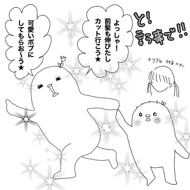 あはは!マチ子ちゃん・・とってもかわいいですよー!でも・・たしかに・・ボブとおかっぱの違いって・・なんなんでしょうね(汗)
