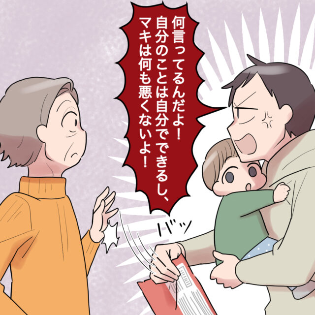 すると、「ゆうくん、マキさんを庇う必要なんてどこにもないのよ?」涙ぐみながらそう言った後で、すぐ素に戻り「まぁ、いいわ。今日はここでお誕生日のお祝いをするから」と真顔で言った後、「カナタちゃーん!今日はばぁばとケーキ食べようね~!」嬉しそうにそう言う義母を見て、「え・・」マキさんとゆうさんは愕然としたのでした。