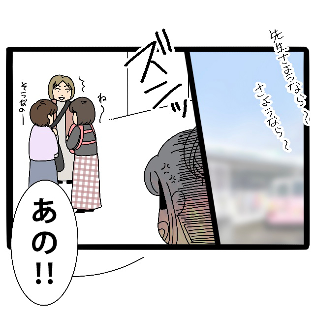 そして翌日。お迎えの時間、世間話をしているママ友たちを見つけると、私はズンズンと輪の中へ。怒りをあらわにして「あの!!」と声を張り上げました。