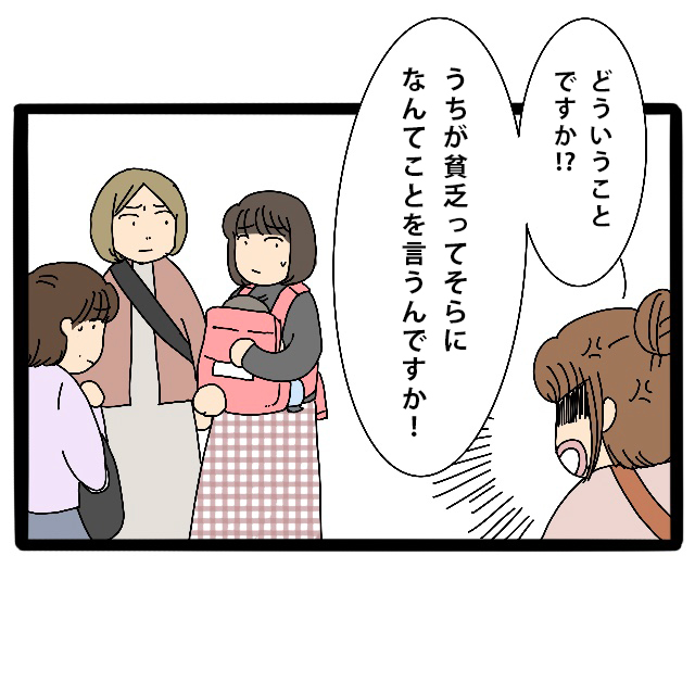「どういうことですか!?うちが貧乏って、そらになんてことを言うんですか!」私は怒りにまかせて声を荒げました。ママ友たちは、そんな私を困った表情で見つめます。すると、そのうちの1人が私に近づき、口を開きました。