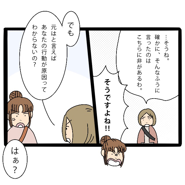 「・・・そうね、確かにそんなふうに言ったのは、こちらに非があるわ」眉をひそめながら、落ち着いた声で話すママ友。私はまだ怒りがおさまらず、「そうですよね!」と力強く言い返しました。すると彼女は少し間を置いて「でも、元はと言えばあなたの行動が原因ってわからないの?」と冷ややかに言います。その言葉にカチンときた私は、思わず「はぁ?」と声を荒げてしまいました。