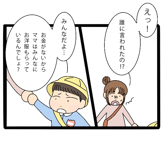 「えっ!誰に言われたの!?」と聞くと、そらは今にも泣き出しそうな顔で「みんなだよ・・・お金がないからママはみんなにお洋服もらっているんでしょ?」とつぶやきました。確かにおさがりはもらっていたけど、それはマイホームの購入資金を貯めるためであって、決して生活が苦しいわけじゃない・・・将来のために頑張っていただけなのに。