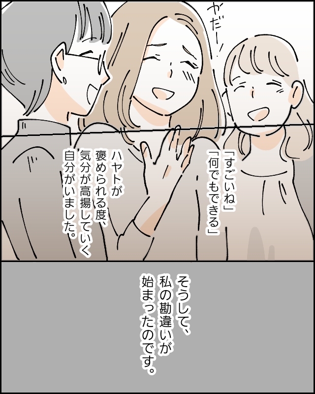 私はハヤトが褒められるたびに気分が高揚し、鼻高々に思うようになっていきました。そして私の勘違いは加速していきました。