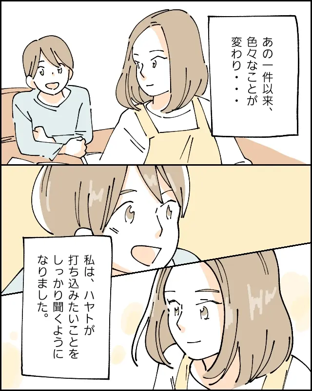 その一件以来、色々なことが変わり、私は、ハヤトが打ち込みたいことを、しっかり聞くようになりました。