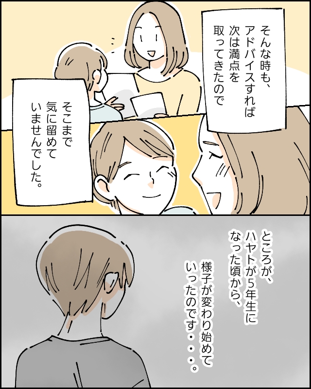 その後も、アドバイスすれば次は満点を取ってきたので、そこまで気に留めていなかったのですが・・ハヤトが5年生になった頃から、様子が変わり始めていったのでした。