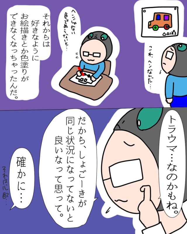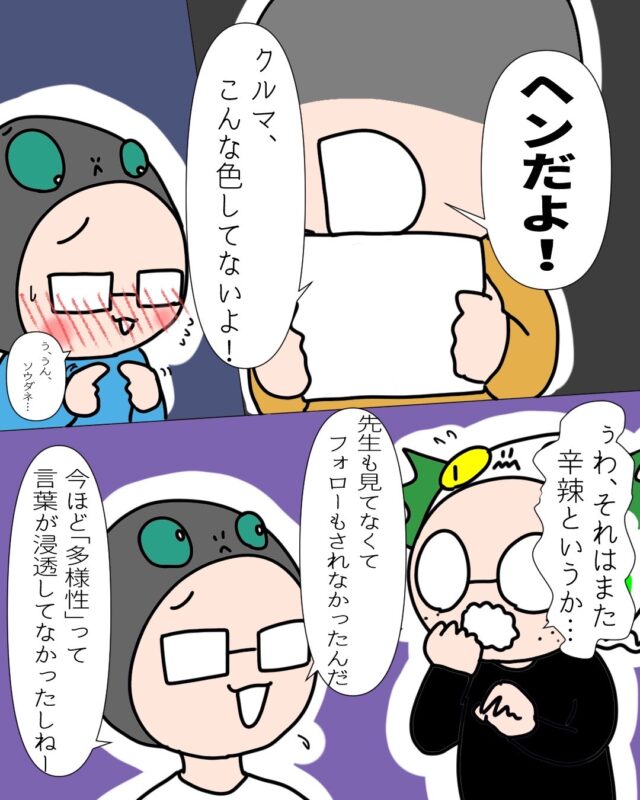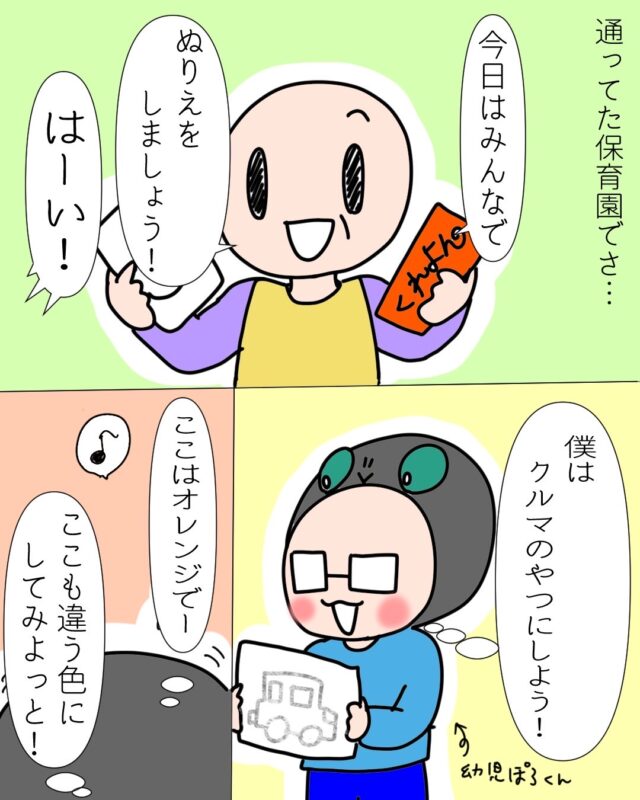 ことあるごとに、「あの時、先生や親から『好きな色で塗っていいんだよ!』とかフォローがあったら、あの頃の感性が今に響いてたのかなって思うんだよね。」と寂しそうに話してくれました。