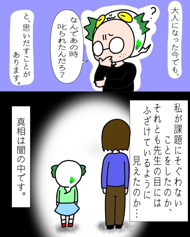 親に「先生に叱られた」なんて言ったら怒られると思い、誰にも話さず大人になりました。