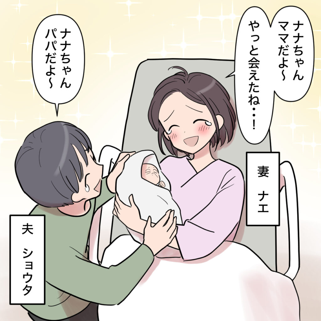 無事に産まれてきてくれたナナちゃんの顔を見た時には、私たちは「ママだよ~、パパだよ~」と言いながら嬉しくて涙が止まりませんでした。