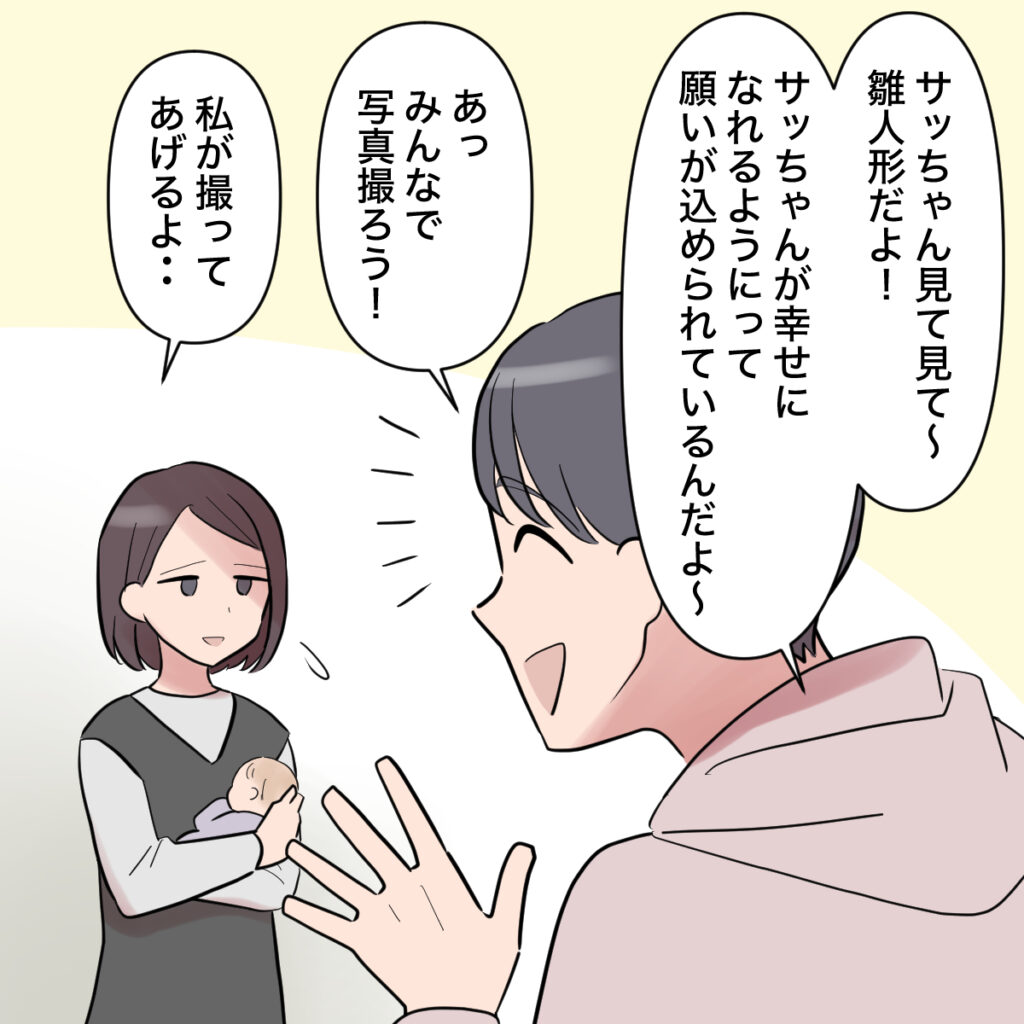 「サッちゃん見て見て~雛人形だよ!サッちゃんが幸せになれるようにって願いが込められているんだよ」とショウタは嬉しそうに言っていましたが、私はとても晴れやかな気持ちにはなれず、「みんなで写真撮ろう!」と言ったショウタにも、「私が撮ってあげるよ。」とこたえました。