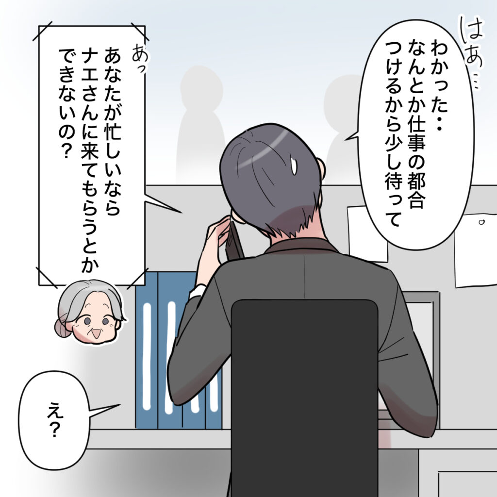 「はぁ・・わかった・・なんとか仕事の都合つけるから少し待って」ショウタがそう答えると、「あっ、あなたが忙しいならナエさんに来てもらうとかできないの?義母にそう聞かれて「え?」と聞き返すショウタさんに、