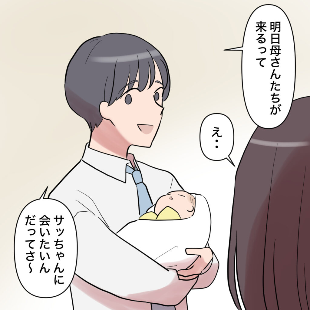 ショウタはさらに私の感情を逆なでしました。「明日、母さんたちが来るって。サッちゃんに会いたいんだってさ~」と。また事後報告。面談、勝手に許可したんだ。