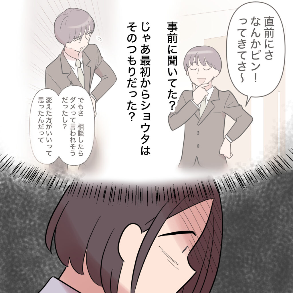 「なんだよ?まだ怒ってるの?」勝手にナナちゃんの名前を変えたことを自分が思いついたかのように嘘をつき、本当は義母が考えた名前に変更するのは計画的だったのかどうかちゃんと説明して欲しいとのメッセージにも返信なく普通に会いに来たショウタに言われてこみ上げる怒りを必死に抑え「どういう経緯か説明して欲しい」ともう一度ショウタに伝えました。