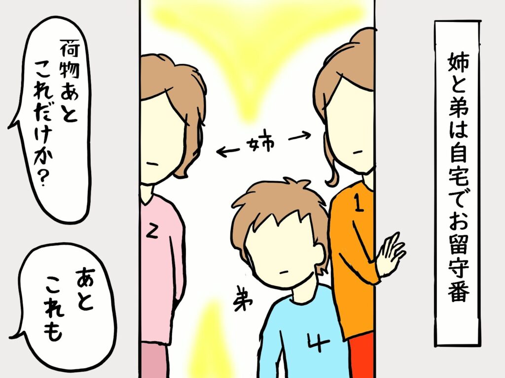 姉たちと弟は自宅でお留守番。「荷物あとこれだけか?」「あとこれも」とバタつくてる子さん達をきょうだい達は静かに見守っていました。