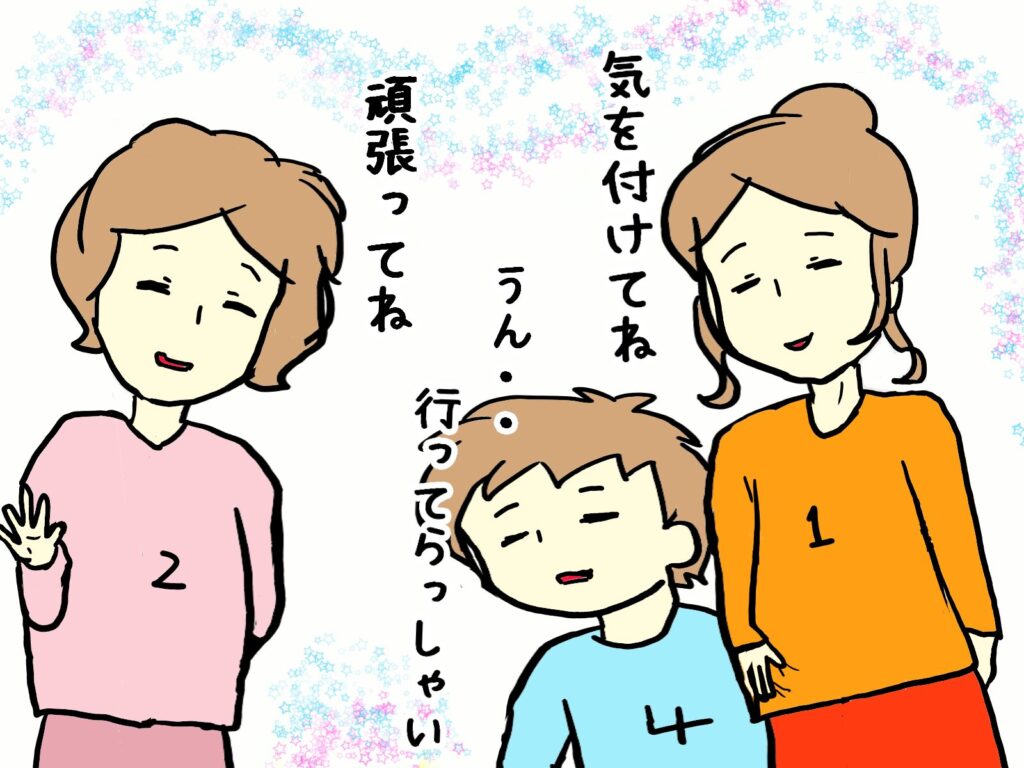 3人も笑顔で「気を付けてね」「うん・・行ってらっしゃい」「頑張ってね」と口々に返しました。