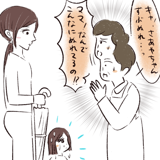 「キャ!さあやちゃんずぶぬれっ!ママ!なんでこんなに濡れてるの!?」
