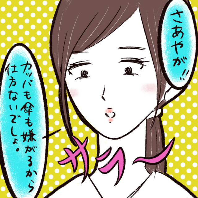 ですが、さあやちゃんのママは「さあやがカッパも傘も嫌がるから仕方ないでしょ」となんとも思っていないようで・・・