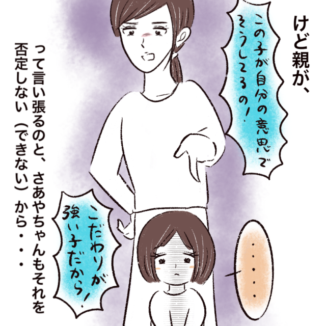 「けど親が、『この子が自分の意思でそうしてるの!こだわりが強い子だから!』って言い張るのと、さあやちゃんもそれを否定しない(できない)から・・・」
