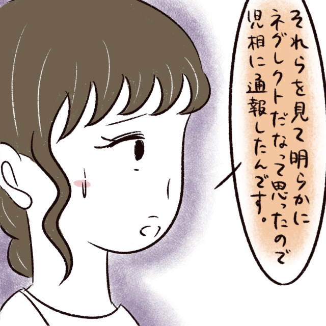 「それらを見て明らかにネグレクトだなって思ったので児相に通報したんです」