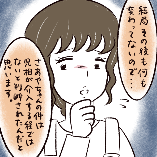 「結局その後も何も変わってないので・・・さあやちゃんの件は児相が介入する程ではないと判断されたんだと思います」