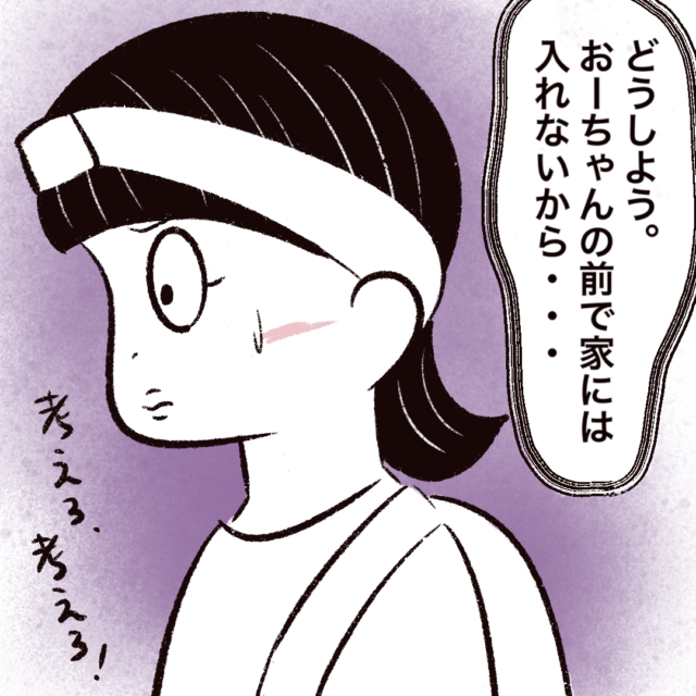 まるさんは、おーちゃんの前で家に入らない方法を考えて、
